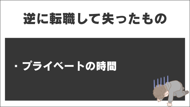良いことばかり言っても信憑生がないので、僕が転職して唯一失ったものを伝えておくと「プライベートの時間」でしょうか。
